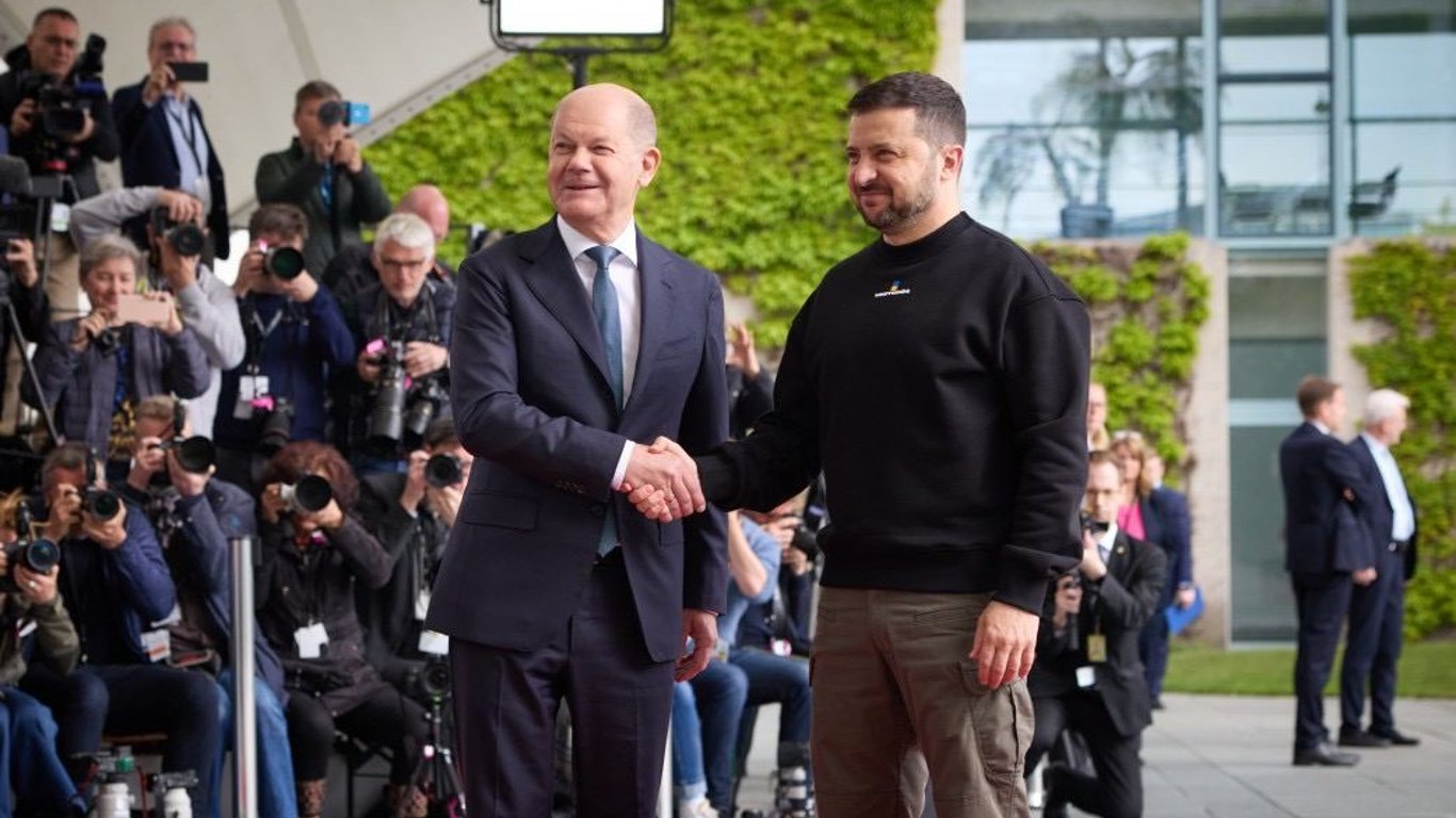 Сьогодні Президент України Володимир Зеленський відвідав Німеччину. Там він зустрівся із президентом Штайнмаєром та канцлером Німеччини Олафом Шольцом. Після зустрічі Зеленський подякував за військову підтримку України.